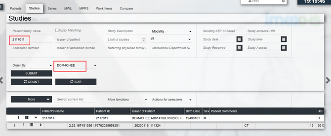 3. Ingresa algún dato en los filtros de búsqueda. No olvides seleccionar en el campo servicio de aplicación web DCM4CHEE.