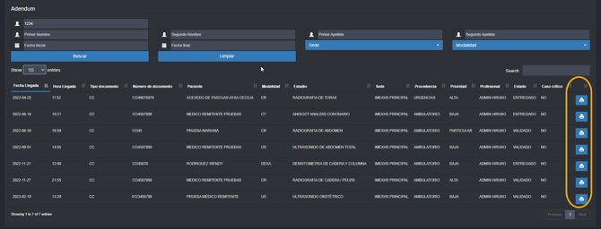 3-En la lista de resultados, dé clic en el botón de imprimir sobre el registro que desea consultar.