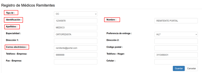 Nota: Ingrese el correo electrónico del médico remitente ya que este le notificara cuando un estudio haya sido validado.