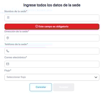 3. Haga clic en el ícono ubicado en la parte superior derecha de la pantalla “Nueva sede”.