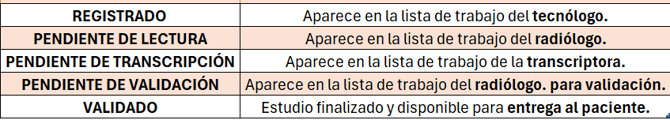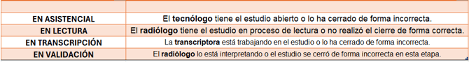 Si los estudios continúan quedando frecuentemente en estados intermedios, informe al área técnica para revisar posibles fallas de conectividad o cierre forzado del navegador.