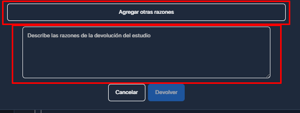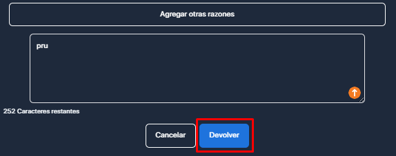 4. Haga clic en el ícono Agregar otras razones e ingrese el motivo de la devolución.