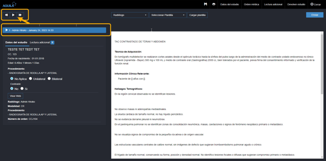 En esta sección podrá escuchar y analizar la grabación realizada por el médico radiólogo, la cual le permitirá comprender de manera detallada la interpretación del estudio.