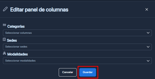 Esta configuración quedará guardada de forma permanente en la plataforma.