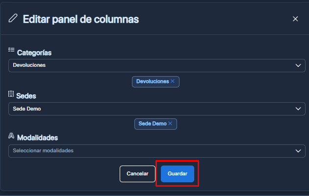 5. Una vez finalizada la configuración, dé clic en Guardar para aplicar los cambios.