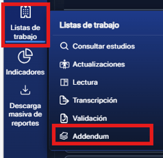- Ingrese al módulo Lista de trabajo – Adendum.