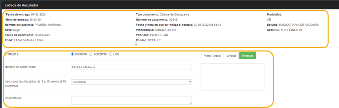 4-Al acceder al proceso de entrega encontrará los datos del paciente, junto con los campos correspondientes a la entrega, los cuales se deberán diligenciar acorde al proceso de entrega que se esté realizando.