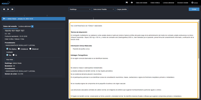 ¿Cómo validar un estudio desde la lista de trabajo del transcriptor en Aquila Enterprise?