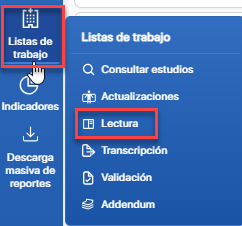 1. Diríjase a la ruta Lista de trabajo > Lectura.