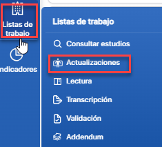 En este apartado aprenderá cómo acceder y visualizar los estudios que se encuentran en la lista de trabajo de actualizaciones dentro de AQUILA +