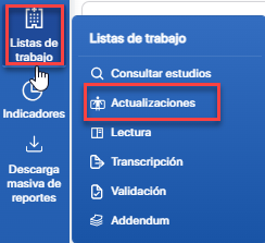 1. Diríjase al módulo Lista de trabajo, submódulo Actualizaciones, y dé clic.