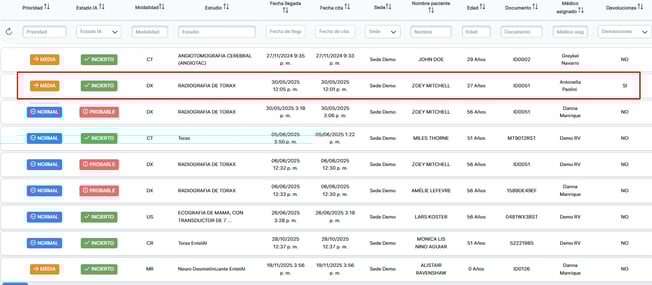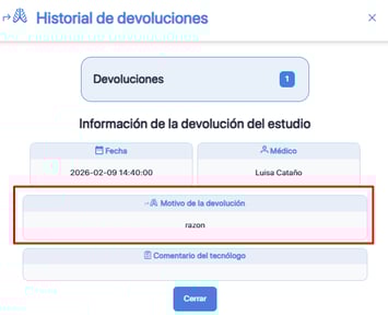 En este instructivo aprenderá a consultar el detalle de las devoluciones de un estudio en la lista de trabajo del tecnólogo en Aquila +.