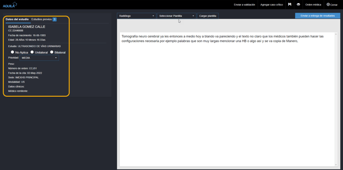 ¿Cómo ver los datos del paciente desde la lista de trabajo de ecografia en Aquila Enterprise?