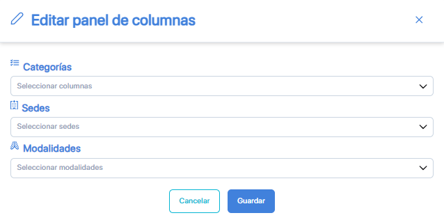 3. En la siguiente sección encontrará las opciones disponibles para configurar la lista de trabajo del tecnólogo, incluyendo categorías, sedes y modalidades. En la lista desplegable de cada una, deberá seleccionar la información que desea visualizar según su necesidad.