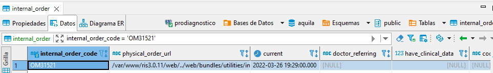 3. Dentro de la base de datos debemos ingresar a la siguiente tabla 'internal_order_code'