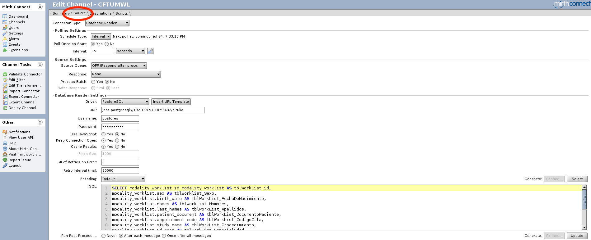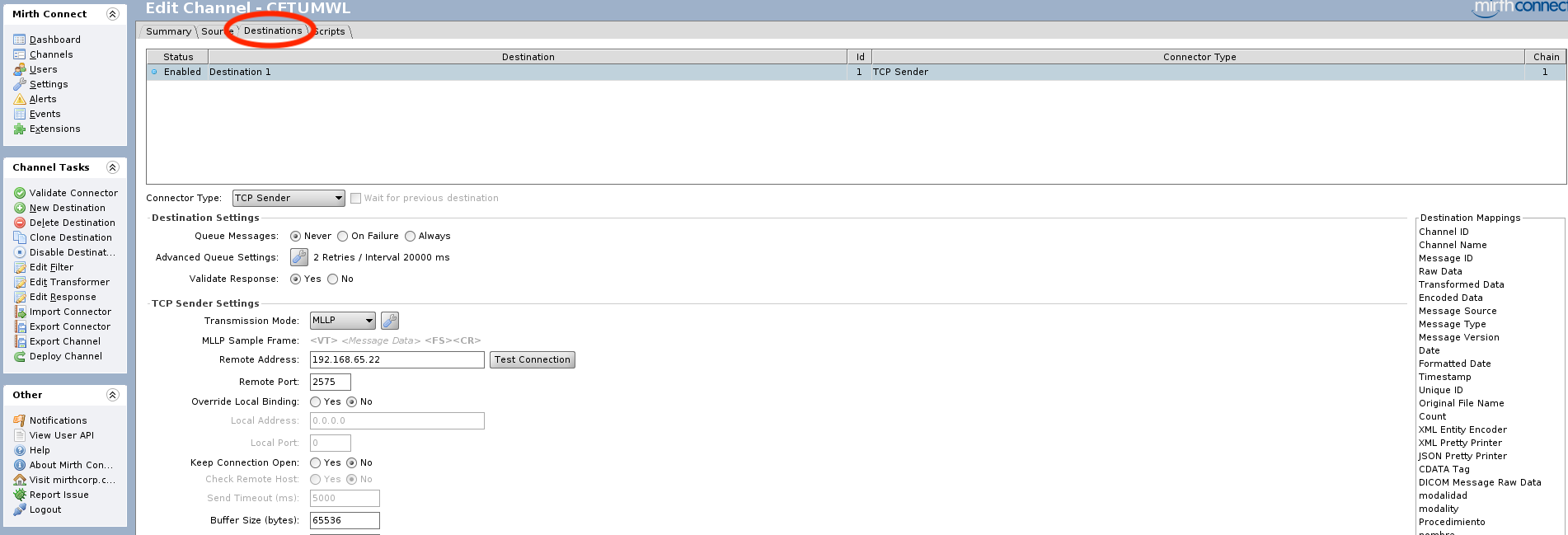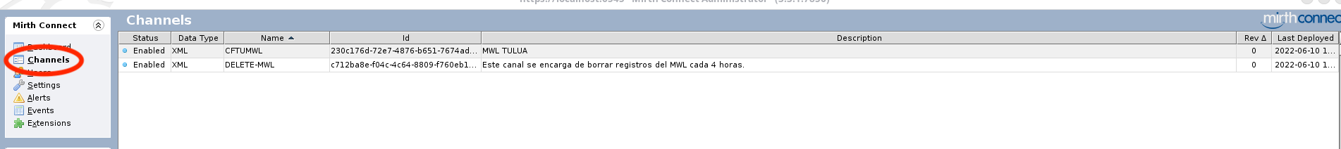 1 - Ubicarse en la lista de canales del MIRTH connect, dando clic en channels: