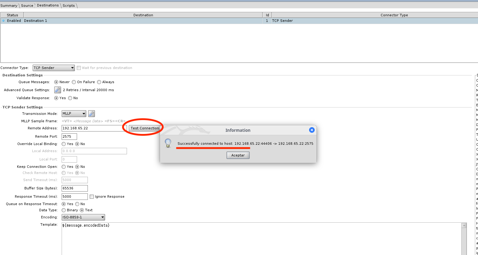 5 - Verificar el destino dando clic en test conection, deberá aparecer successfully: