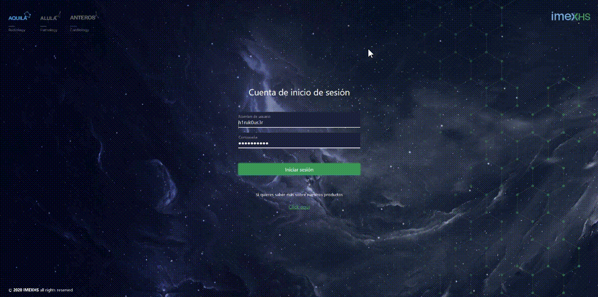- Realizado el paso anterior, acceda al PACS en la nube, con usuario y contraseña.